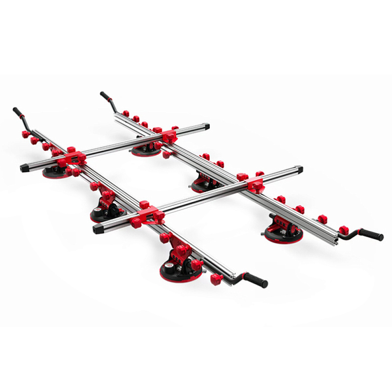 Переноска оснащена шестью вакуумными 6-ми дюймовыми присосками для гладкой и структурной плитки (работают даже на агрессивном рельефе). Присоски оборудованы манометром для контроля давления.