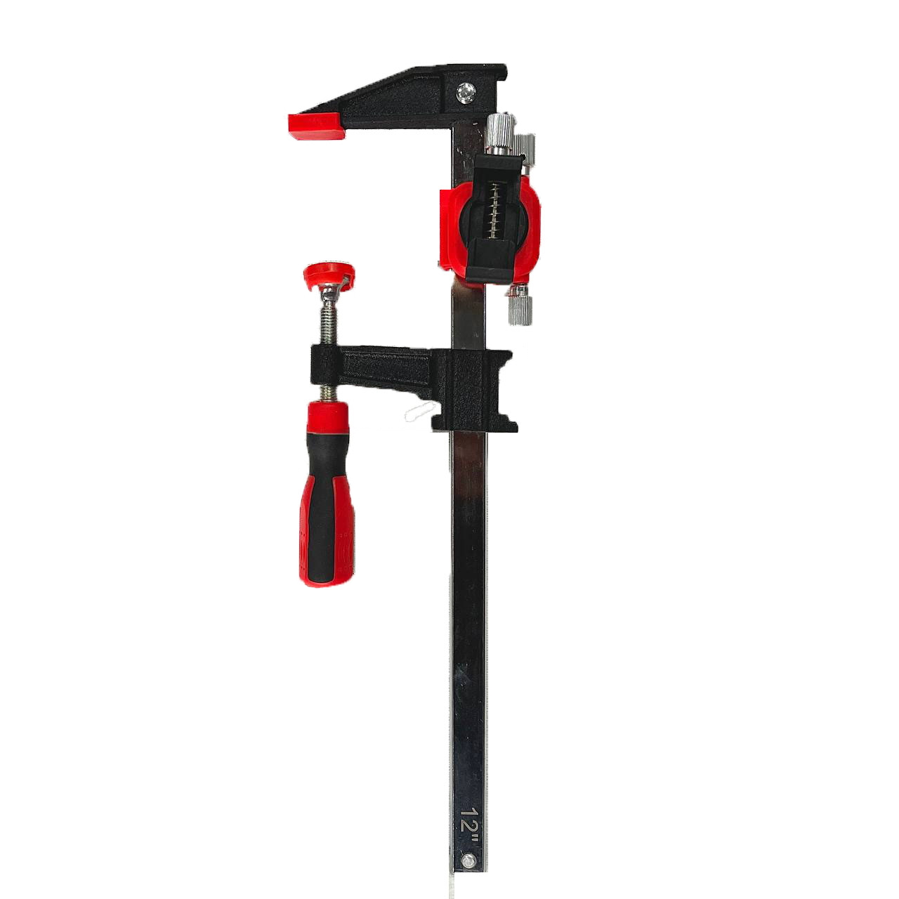 F-образная струбцина, крепкая рукоятка обеспечивает значительное усилие стягивания губок. Благодаря удобной рукоятке сохраняется простота вращения в любом положении.